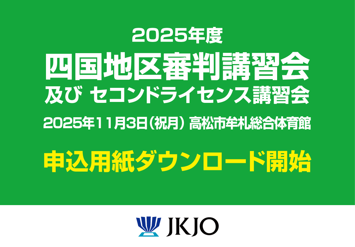 [日 時]令和7年11月3日(祝月) [会 場]高松市牟札総合体育館2階アリーナ [締 切]令和7年10月20日(月)必着 詳しくは下記参加申込用紙一式をご参照下さい ▼各種ダウンロード▼ 審判講習会参加申込用紙一式 セコンドライセンス案内&発行書 セコンドライセンス参加申込書(エクセルフォーム)