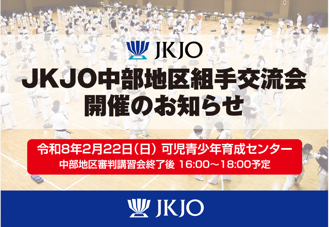 令和8年2月22日(日)、「JKJO中部地区組手交流会」を下記会場にて開催致します。
