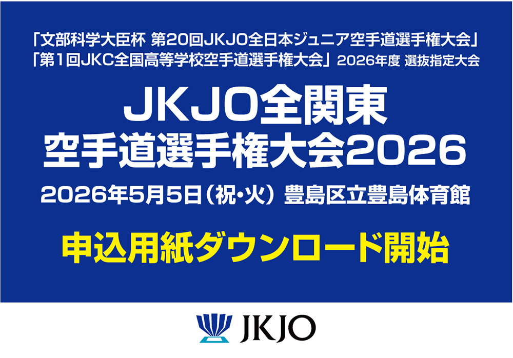 「文部科学大臣杯 第20回JKJO全日本ジュニア空手道選手権大会」及び、高校生の部は「第1回JKC全国高等学校空手道選手権大会」の選抜指定大会となります。申込用紙が別となっておりますのでご注意下さい。