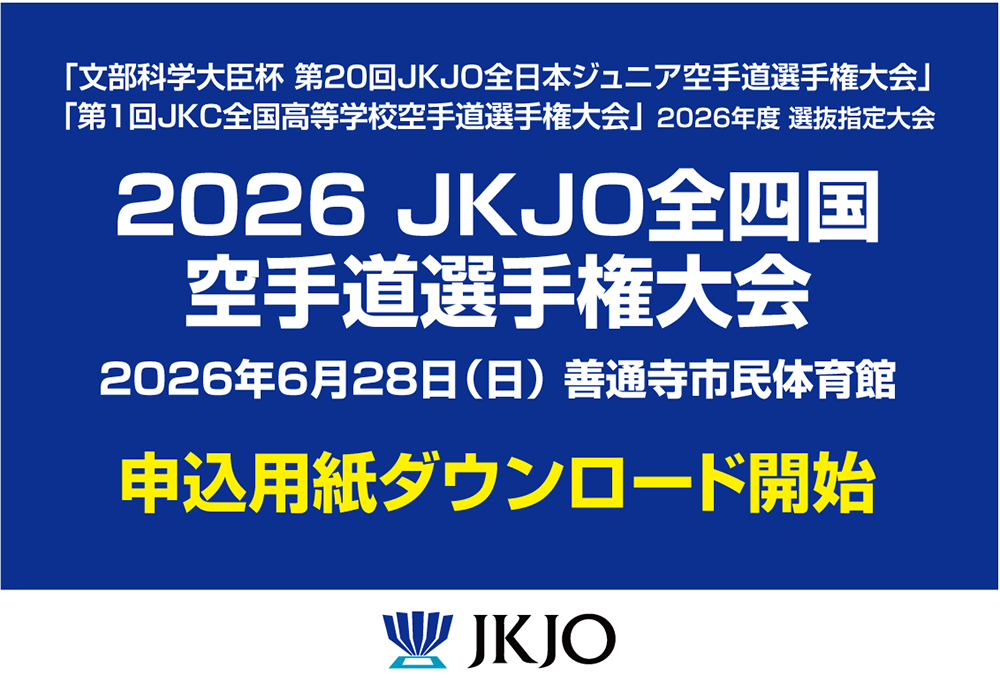 「文部科学大臣杯 第20回JKJO全日本ジュニア空手道選手権大会」及び、高校生の部は「第1回JKC全国高等学校空手道選手権大会」の選抜指定大会となります。申込用紙が別となっておりますのでご注意下さい。