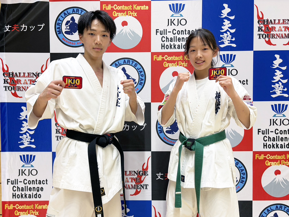 文部科学大臣杯 第20回JKJO全日本ジュニア空手道選手権大会 選抜指定大会「Hokkaido Full-Contact Karate Challenge Cup 2026」において、MVPに輝いた2名のご紹介です。受賞した選手には、2026年度MVPワッペンとポスターが贈られます。