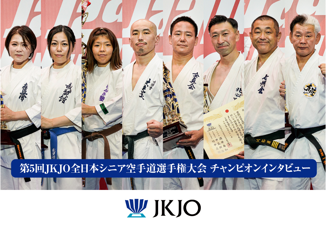 今回のJKJO全日本は出場クラスの出場者数が41名と多く、またその約2/5がどこかの大会で入賞しているなど、とてもレベルの高いものでした。そのなかで優勝できたことをたいへんうれしく思っています。今年はJFKO国際大会シニアをはじめとしていくつかの大会に出場し、今回のJKJO全日本まで無敗で来ることができました。これも道場の仲間たちのおかげだと感謝しています。決勝戦の夏目良典選手(桜塾)は強くて、確かな勝利につなげるために、相手の突きをブロックしながら間合いを作り下段蹴りで攻撃しました。あとは3回戦の伊藤雄選手(世界全極真長谷川)も強く、ここで勝ち上がるのが大変でした。判定はマストでしたから、すべての試合で審判の印象を心がけて戦いました。今年は、週4日の稽古以外に毎朝30分の散歩と5分の縄跳び、5分のシャドーを続けているのですが、これがすべての下地になっていると思います。第3回JKJO全日本シニアに続いて2度目の優勝ですので、ぜひこのままJKJO全日本で連覇を続けたいと思っています。私からお願いがあるのですが、ぜひ、かつて日本のフルコンタクト空手界を沸かしたレジェンドたちがシニア大会に出場して盛り上げてほしいと思っています。そして、あの頃に憧れた往年の選手たちと試合をしてみたいです。関係者のみなさま、ありがとうございました。そして、夢の実現へ向けてこれからもよろしくお願いします。
