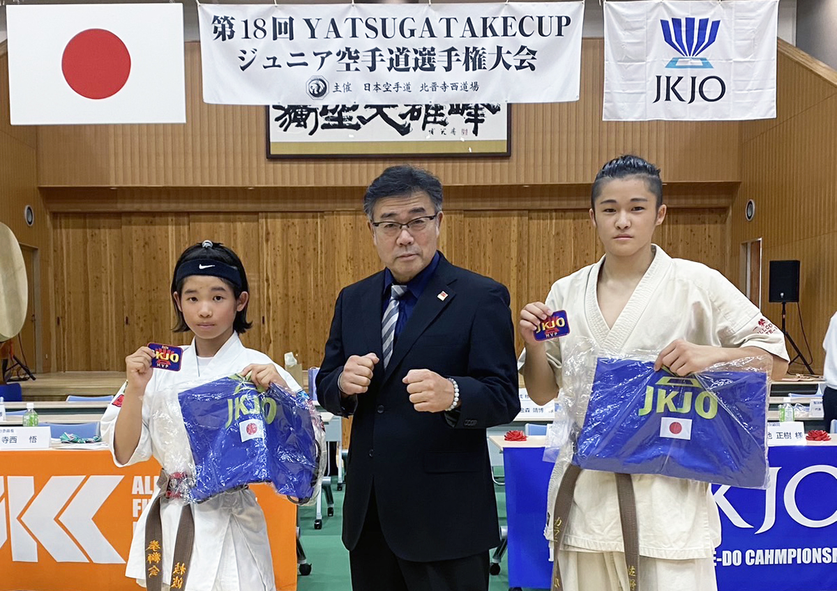 文部科学大臣杯 第19回JKJO全日本ジュニア空手道選手権大会 選抜指定大会「第18回 YATSUGATAKE CUP ジュニア空手道選手権大会」において、MVPに輝いた2名のご紹介です。受賞した選手には、2025年度限定オリジナルナップサックとワッペンが贈られます。