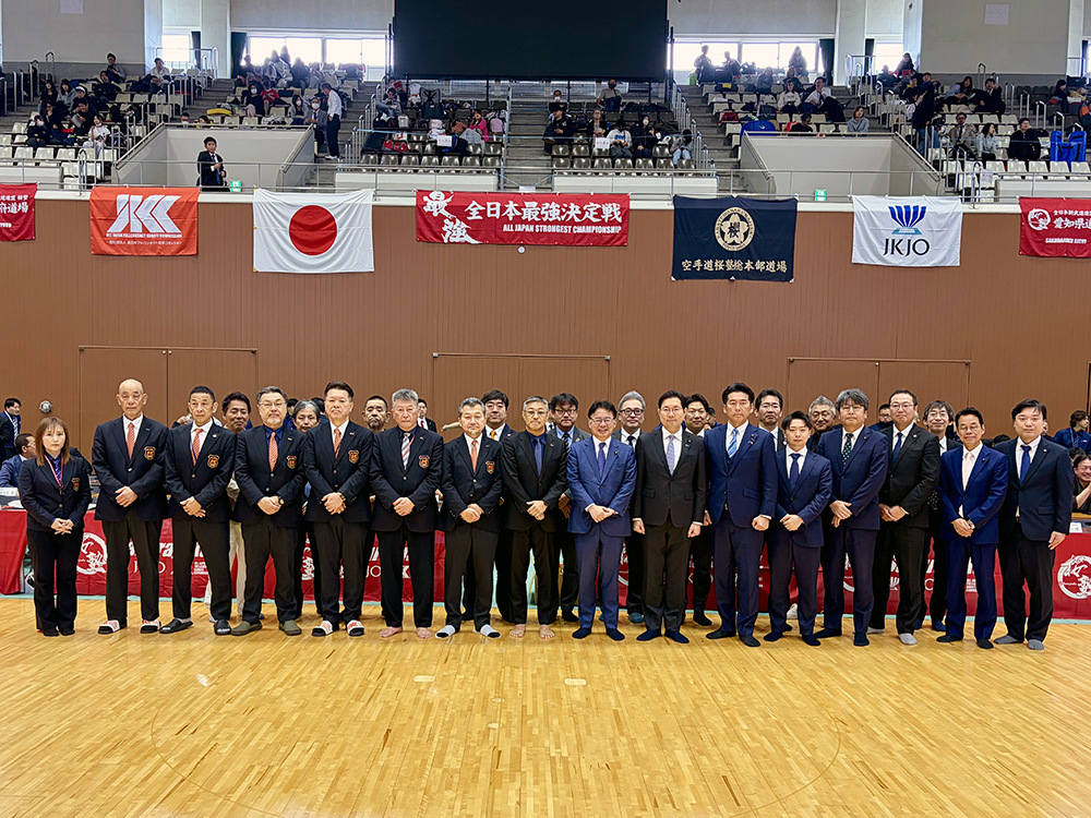 開会式では、ご来場いただいた厚生労働大臣の上野賢一郎先生より選手たちへ熱いエールをいただき、桜塾の2025年度一般及びジュニアJKJOチャンピオンの6人も紹介された。